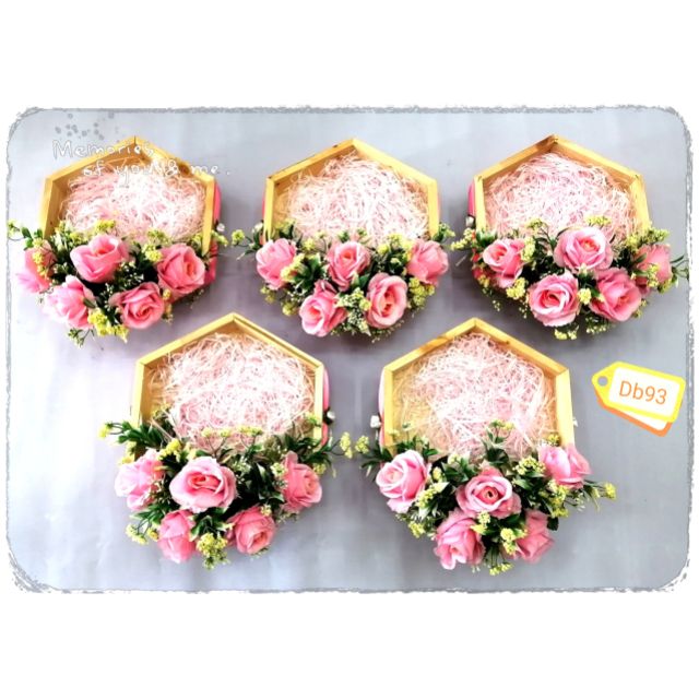 Letak sahaja bunga dan barang hantaran , dah siap . ( kecuali pallet base hijau termasuk base seperti dalam gambar).